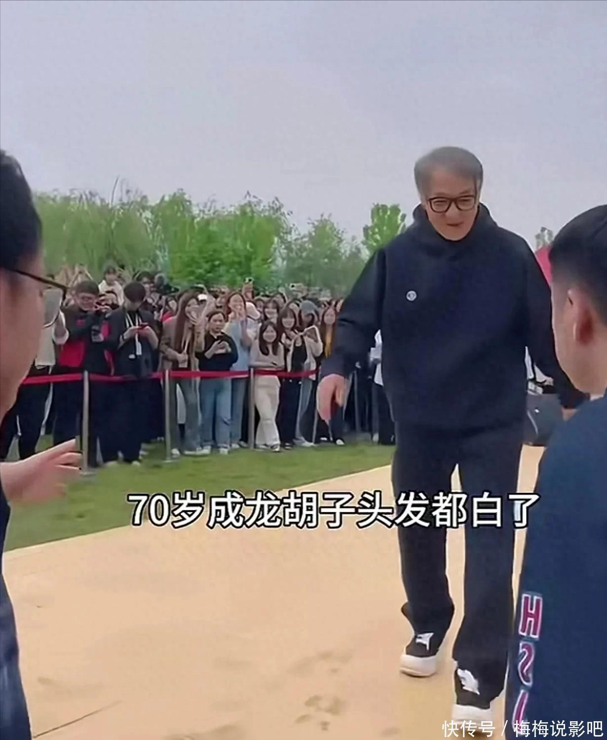 但或许正因为年轻时对身体消耗太大,成龙的衰老速度似乎比同龄人都要厉害,满头的白发不说,连胡子也已经白完了,走起路也迟缓了很多。